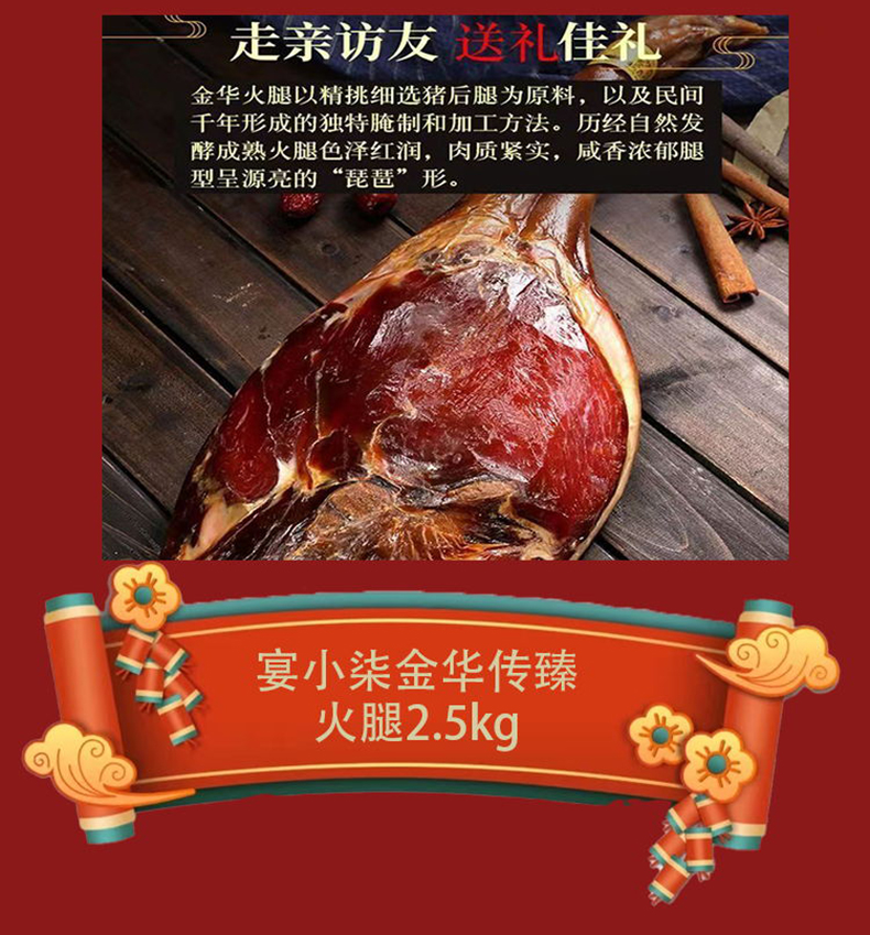 宴小柒金华传臻火腿 2.5kg 【精装盒】两年整腿