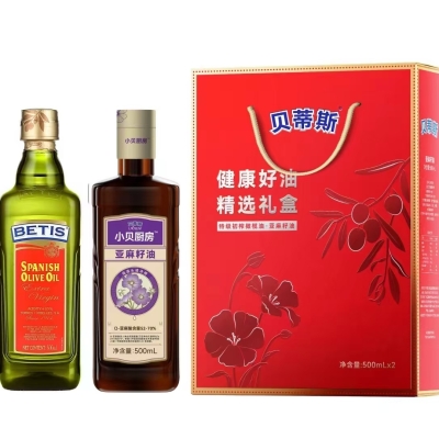 贝蒂斯特级初榨橄榄油500ml+贝蒂斯小贝厨房亚麻籽500ml组合装礼盒